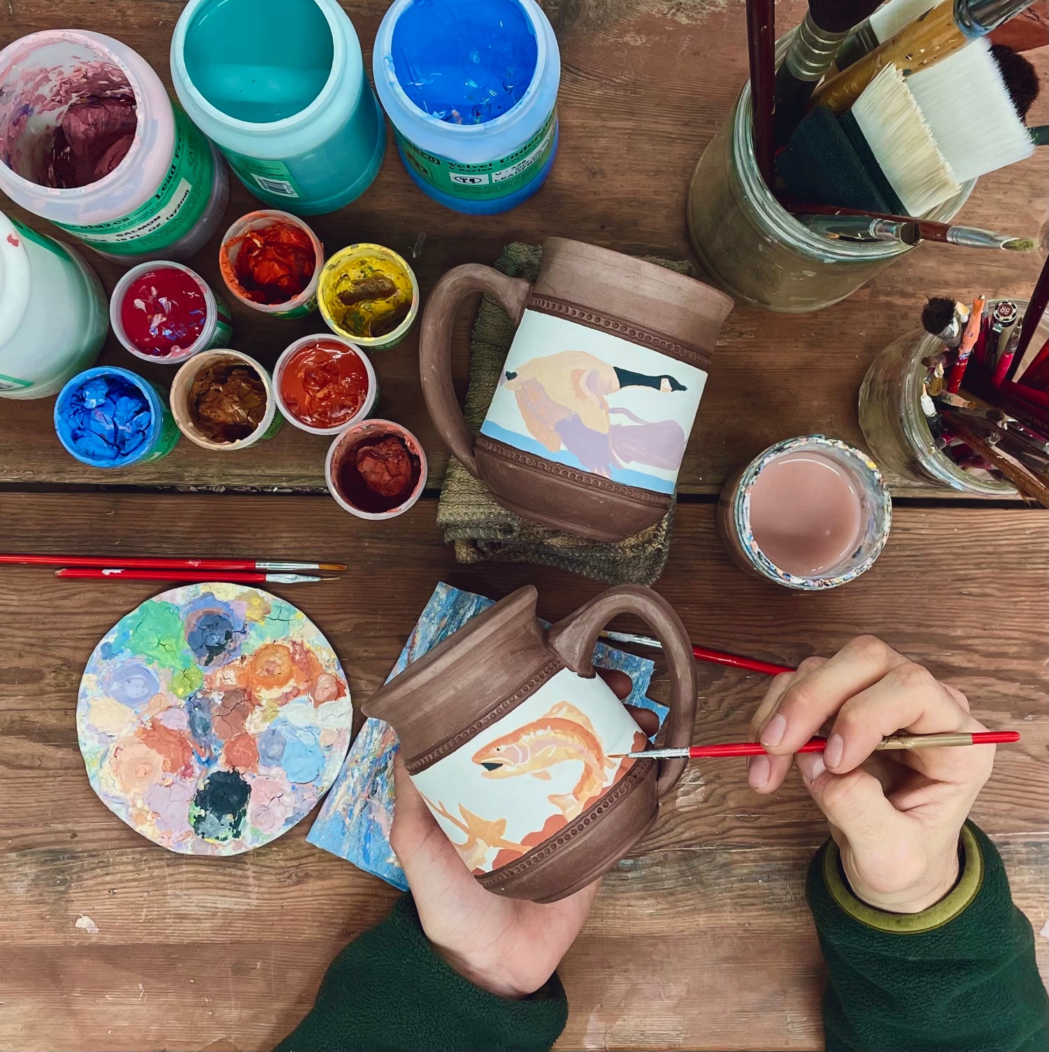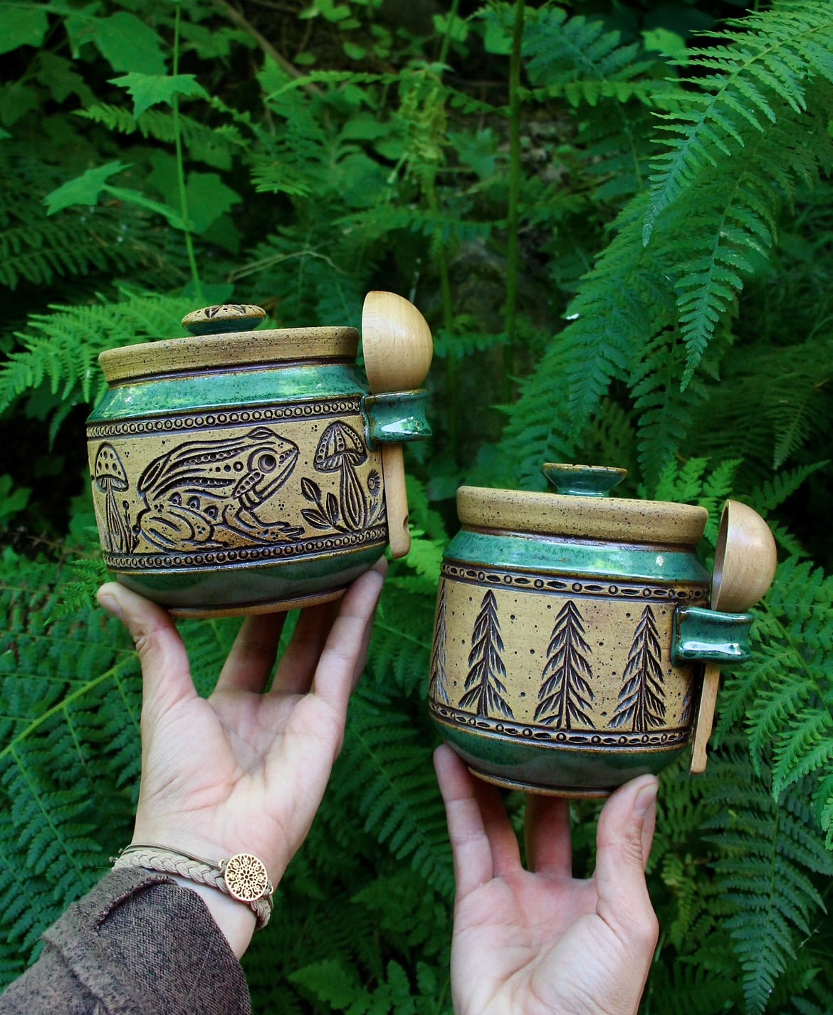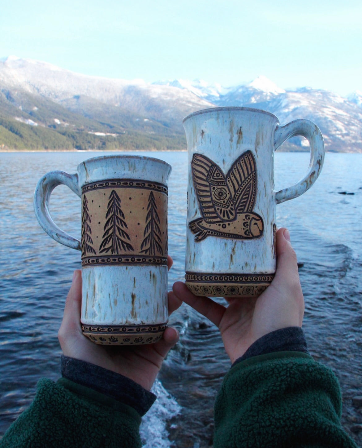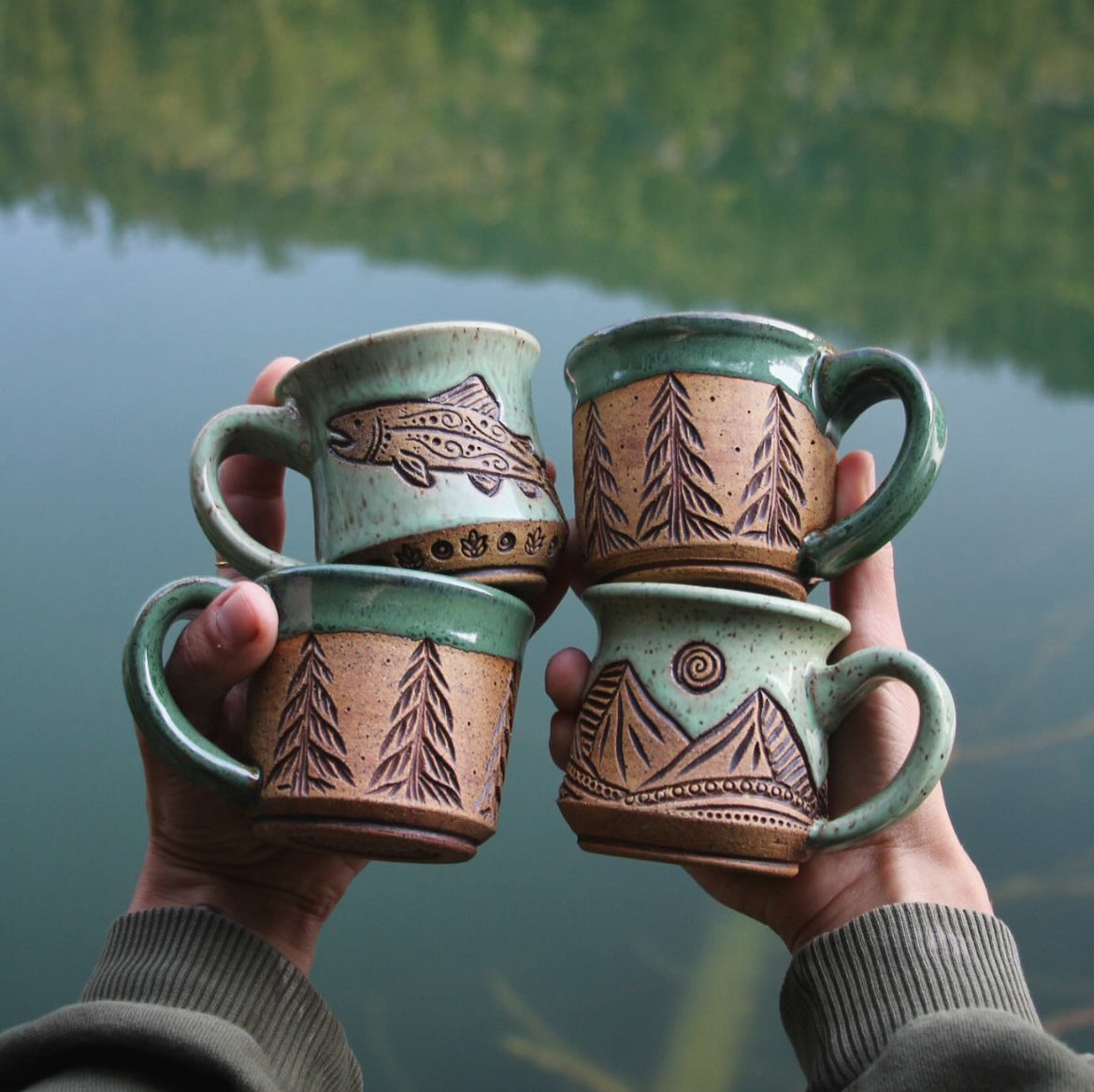 Handmade ceramics 🌿🐝 Carvings by Jenny and paintings by Trent. Made in Nelson, Canada 🍁