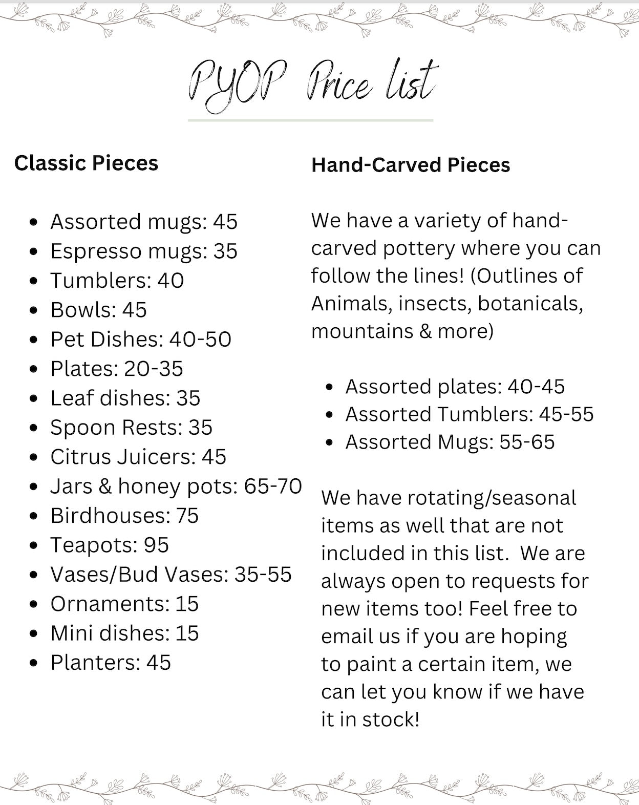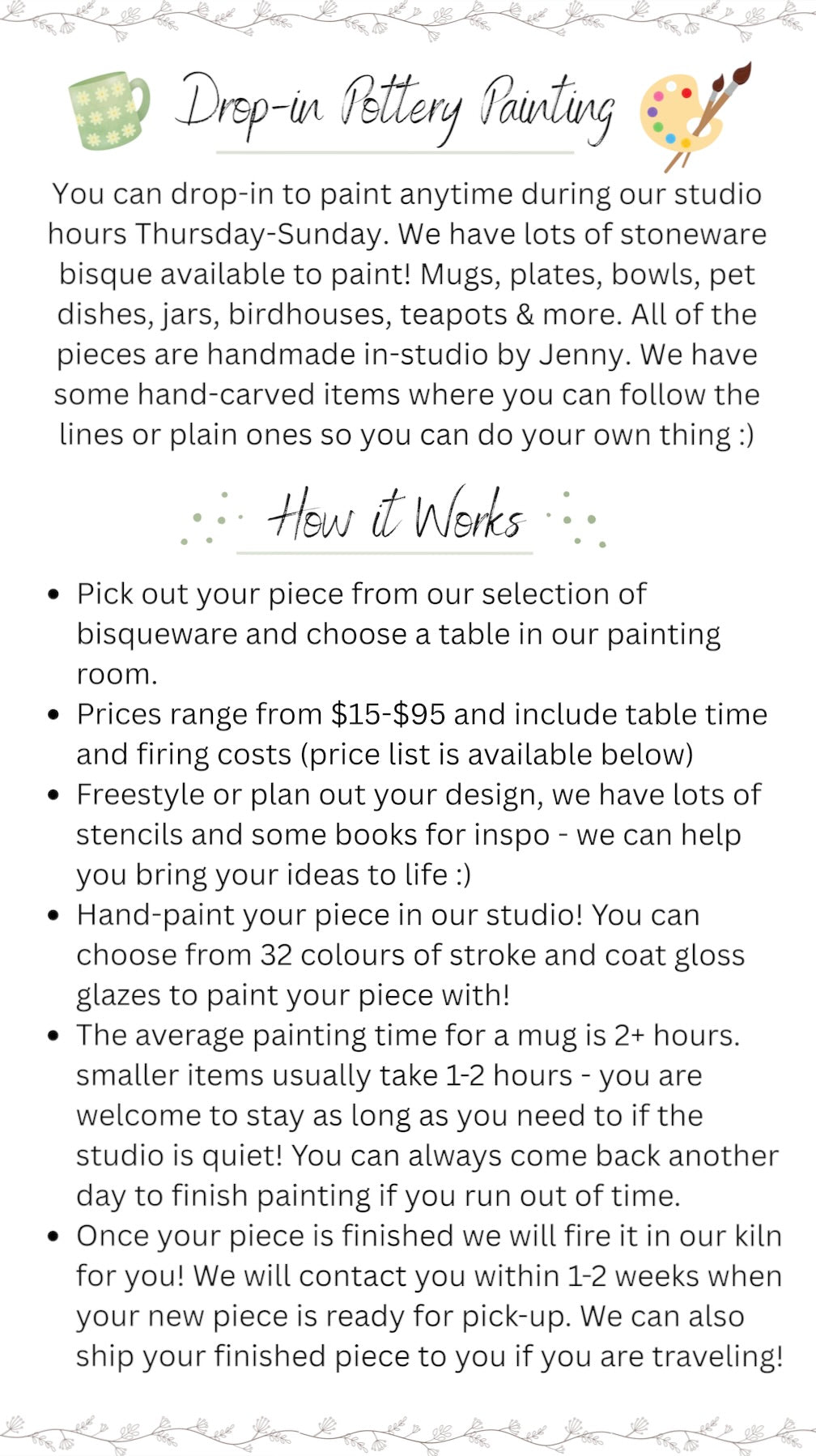 Drop-in pottery painting & gallery
